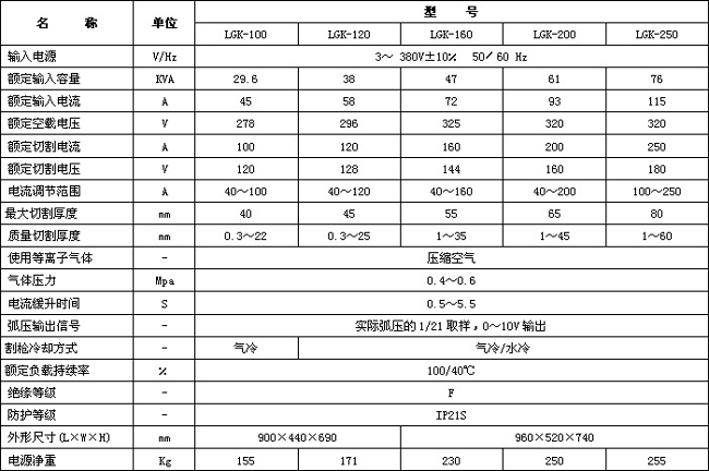 LGK-100、120、160、200、250可控硅式空氣等離子切割機(jī)
