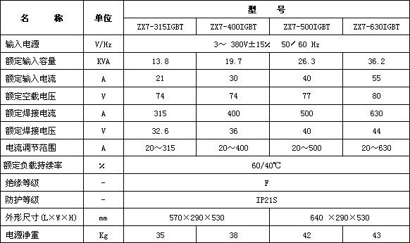 ZX7-315、400、500、630IGBT逆變式手工直流電弧焊機(jī)