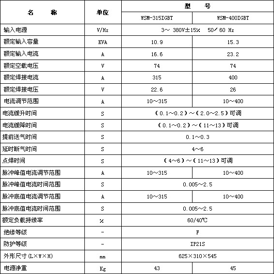 WSM-315、400IGBT逆變式脈沖氬弧焊、手工焊兩用機(jī)