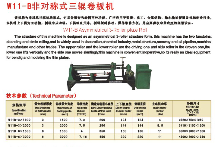 W11-B非對(duì)稱式三輥卷板機(jī)