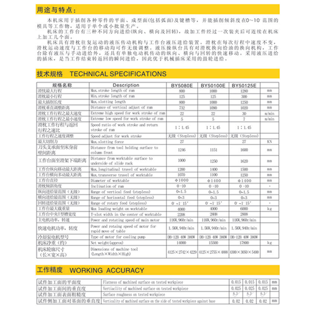 BY5080E BY50100E BY50125E 型液壓插床