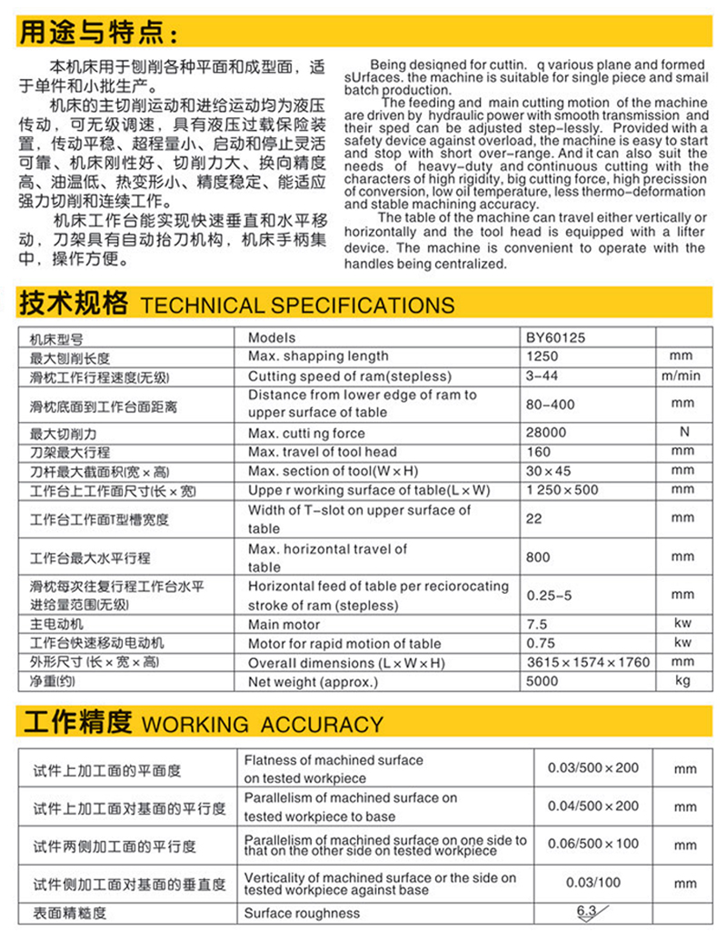 BY60125C型液壓牛頭刨床