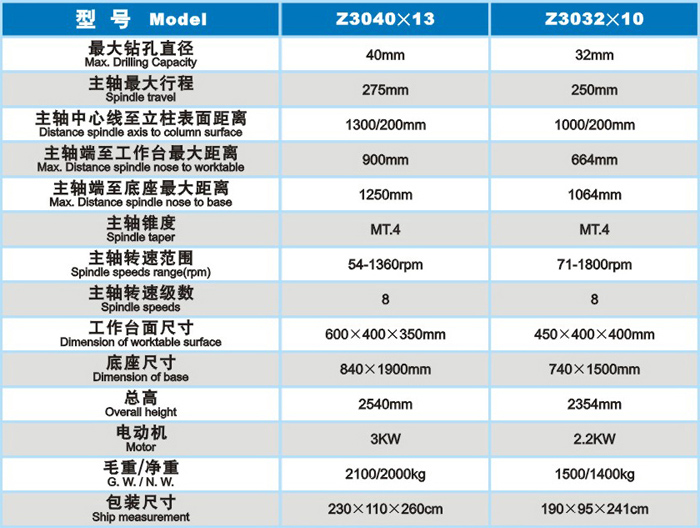 搖臂鉆床 -> Z3032×10、Z3040×13